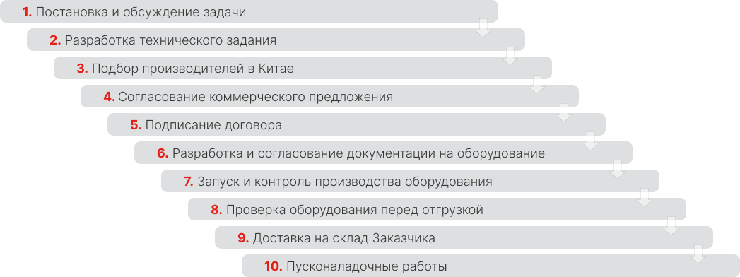Прямой договор Подписание прямого контракта с китайским производителем с полноценным сопровождением реализации проекта нашей компанией